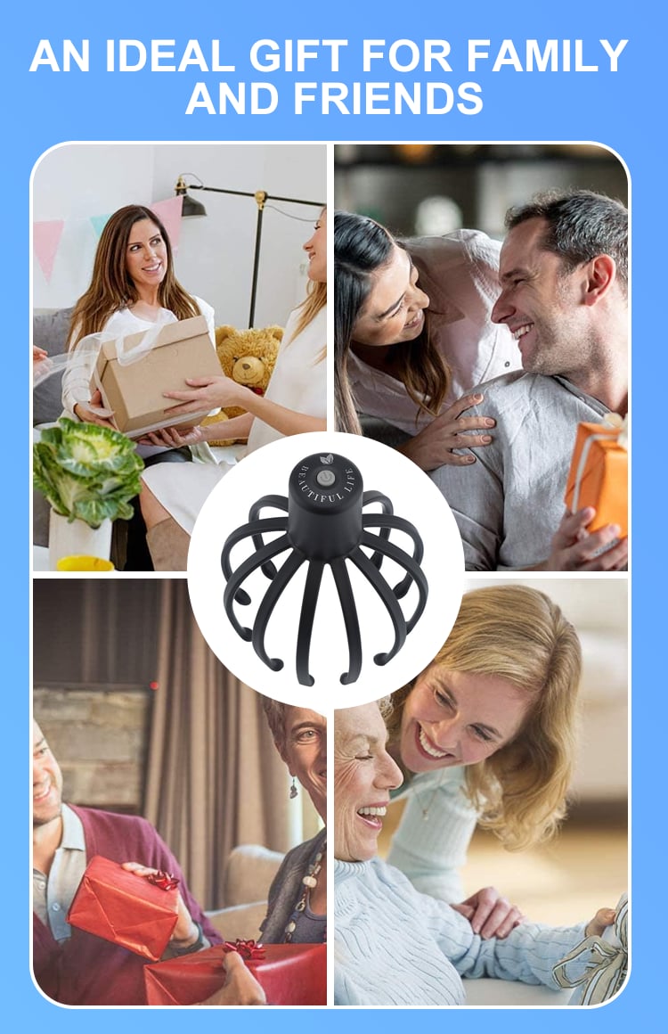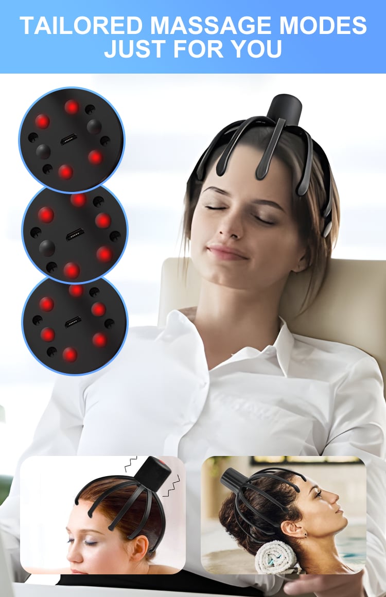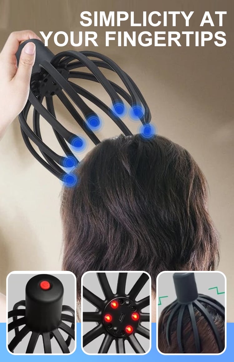 Twelve detachable massage claws for a comprehensive head massage.