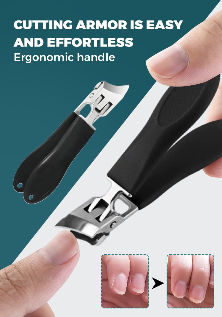 The generous wide jaw opening easily accommodates thick nails, allowing you to trim both fingernails and toenails effortlessly without squeezing or straining.